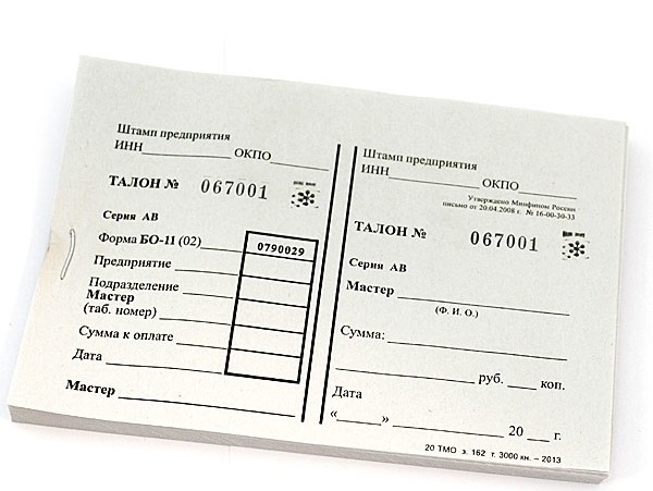 Квитанции БО-11