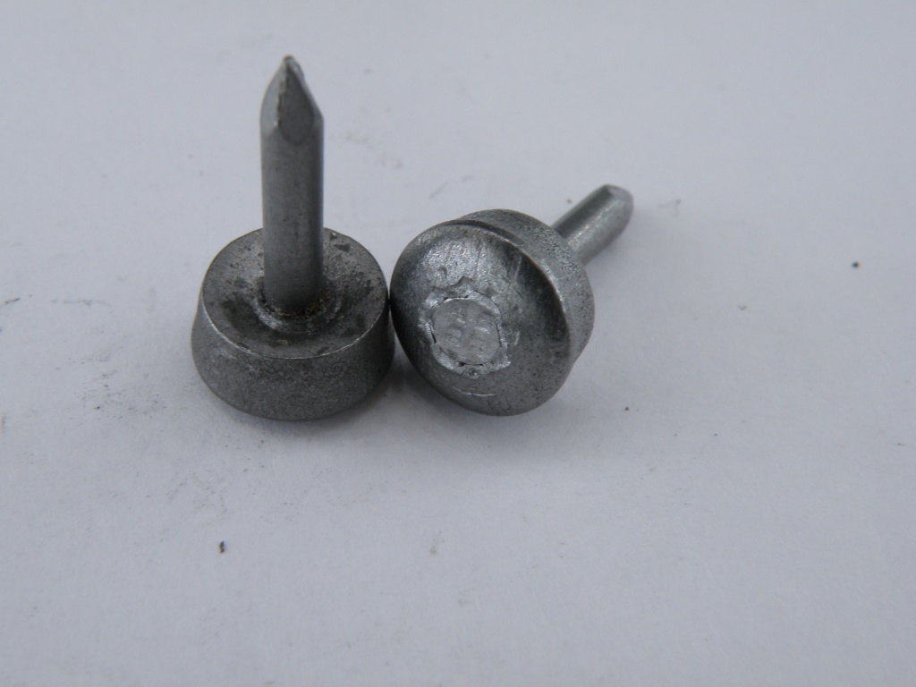 Набойка металлическая с впрессованным круглым штырем. Длина штыря - 12-14 мм.