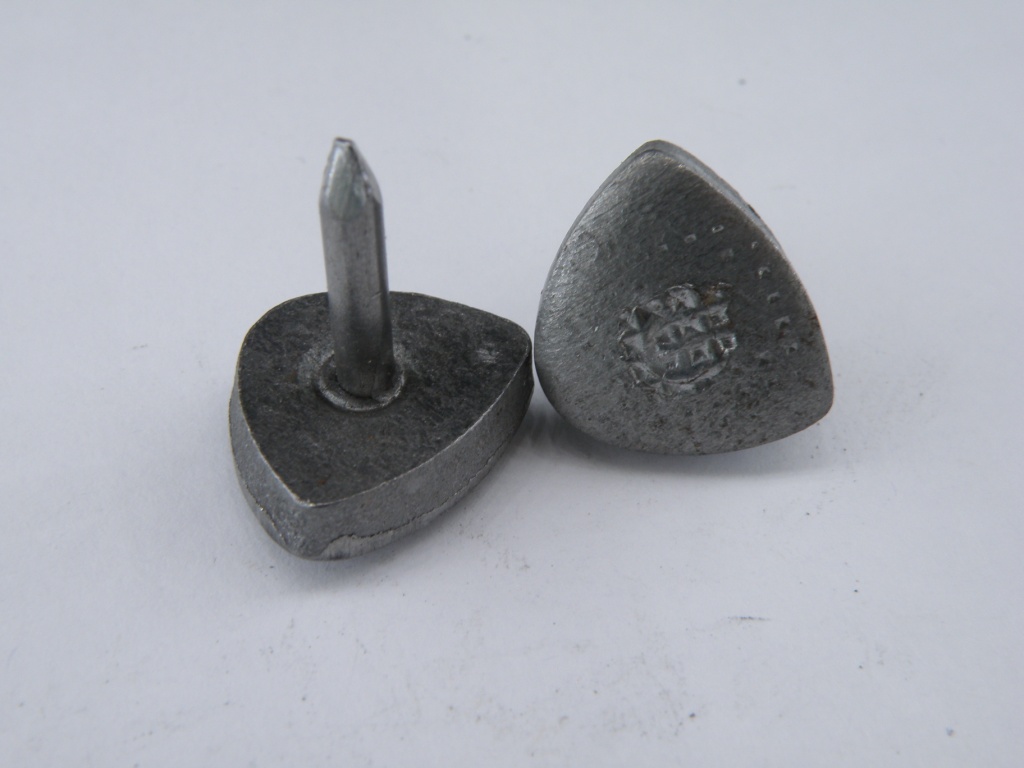 Набойка металлическая с впрессованным круглым штырем. Длина штыря - 12-14 мм.