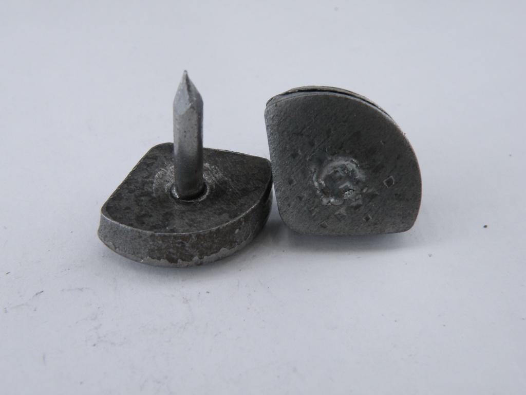 Набойка металлическая с впрессованным круглым штырем. Длина штыря - 12-14 мм.