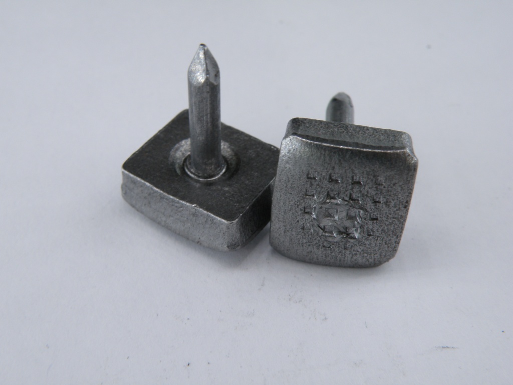 Набойка металлическая с впрессованным круглым штырем. Длина штыря - 12-14 мм.