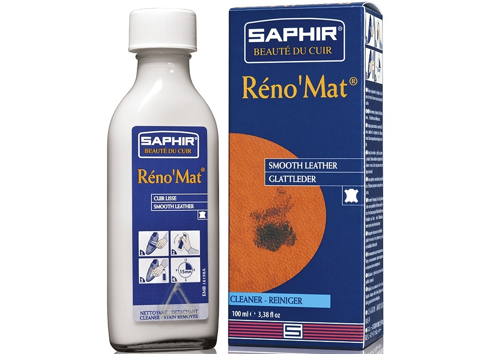 Очиститель «Reno’Mat» предназначен для интенсивной чистки и удаления сильных загрязнений, пятен с изделий из всех видов гладких кож. Выводит масляные, застарелые пятна и разводы. Обновляет, очищает поры кожи, удаляет остатки старого крема. Перед употреблением взболтать, нанести средство губкой или мягкой тканью на обрабатываемую поверхность и протирать до исчезновения пятен, загрязнений. Через несколько минут поверхность приобретает свой цвет и мягкость. Для чувствительных кож протестировать на скрытом или внутреннем участке изделия.